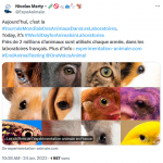 Exposition des chiffres et des pratiques de l’expérimentation animale en France pour la JMAL 2023, accompagnée d’appels à signatures de pétitions.